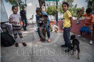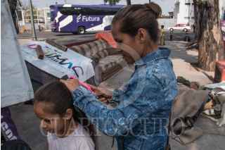 CIUDAD DE MÉXICO, 09MAYO2020.- La joven "Bere", sus hijos y familiares conviven en el camellón ubicado en la avenida José Urbano Fonseca, en donde han tenido que vivir las últimas semanas debido a su complicada situación económica que los ha obligado a abandonar el lugar en donde anteriormente rentaban. Pese a la situación, Bere y sus familiares han optado por dedicarse a la venta de dulces en las avenidas y cuidar coches. Mañana en el país se celebrará el día de las madres, en medio de la emergencia sanitaria que se vive por coronavirus (Covid-19). FOTO: MARIO JASSO /CUARTOSCURO.COM