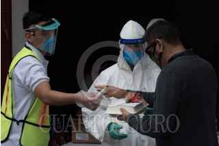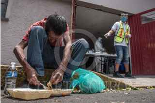 CIUDAD DE MÉXICO, 09MAYO2020.- Voluntarios de la Parroquia del Santo Cristo de la Agonía inauguraron el comedor comunitario para brindar ayuda a las personas vulnerables durante la fase 3 de la pandemia por coronavirus (covid-19). El comedor se encuentra en la calle Sándalo 111, con atención de sábado a domingo. FOTO: MARIO JASSO /CUARTOSCURO.COM