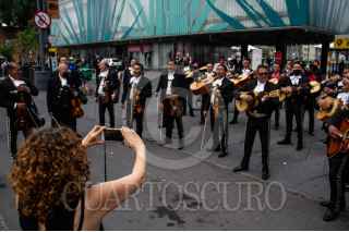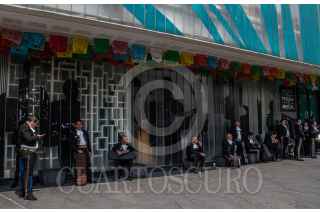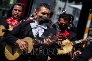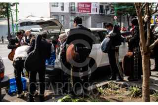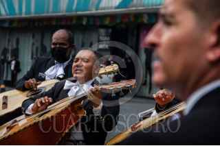 CIUDAD DE MÉXICO, 09MAYO2020.- Mariachis de Garibaldi esperan como cada día clientes para serenata, pese que hoy previo al Día de las Madres era de las mejores fechas no han tenido ningún trabajo. La gente se solidariza con ellos y llega en camionetas a darles despensas. El país se encuentra en fase 3 de emergencia sanitaria por el Virus COVID-19, exhortando a la población que se quede en casa para no contagiar ni contagiarse, lo que ha precarizado la llegada de trabajo a los mariachis que no tienen la opción de seguir estas recomendaciones. FOTO: ANDREA MURCIA/CUARTOSCURO.COM