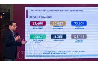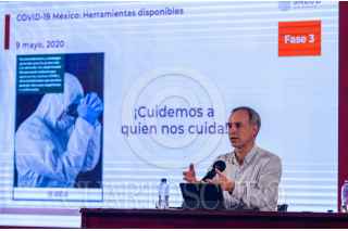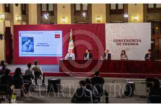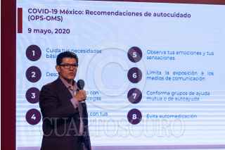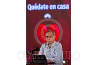 CIUDAD DE MÉXICO, 09MAYO2020.- Hugo López Gatell Ramírez, subsecretario de Prevención y Promoción de la Salud; Juan Manuel Quijada Gaytán, director General de los Servicios de Atención psiquiátrica; Gady Zabicky Sito, titular de la Comisión Nacional contra las Adicciones y Lorena Rodrígiuez Bores, secretaria técnica del Consejo Nacional de Salud Mental, durante la conferencia de informe COVID-19 en Palacio Nacional. FOTO: ANDREA MURCIA/CUARTOSCURO.COM