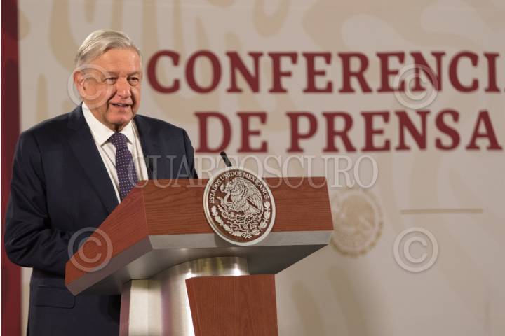 CIUDAD DE MÉXICO, 11MAYO2020.- Andrés Manuel López Obrador, Presidente de México, durante el inicio de la conferencia matutina en Palacio Nacional. Lo acompañan Luisa María Alcalde Luján, secretaria del Trabajo. FOTO: MOISÉS PABLO/CUARTOSCURO.COM