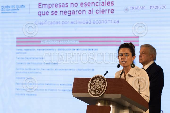CIUDAD DE MÉXICO, 11MAYO2020.- Andrés Manuel López Obrador, Presidente de México, durante el inicio de la conferencia matutina en Palacio Nacional. Lo acompañan Luisa María Alcalde Luján, secretaria del Trabajo. FOTO: MOISÉS PABLO/CUARTOSCURO.COM