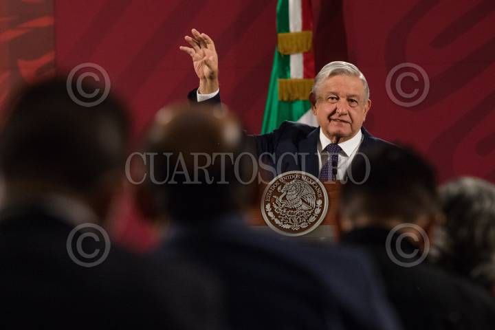 CIUDAD DE MÉXICO, 11MAYO2020.- Andrés Manuel López Obrador, Presidente de México, durante el inicio de la conferencia matutina en Palacio Nacional. Lo acompañan Luisa María Alcalde Luján, secretaria del Trabajo. FOTO: MOISÉS PABLO/CUARTOSCURO.COM