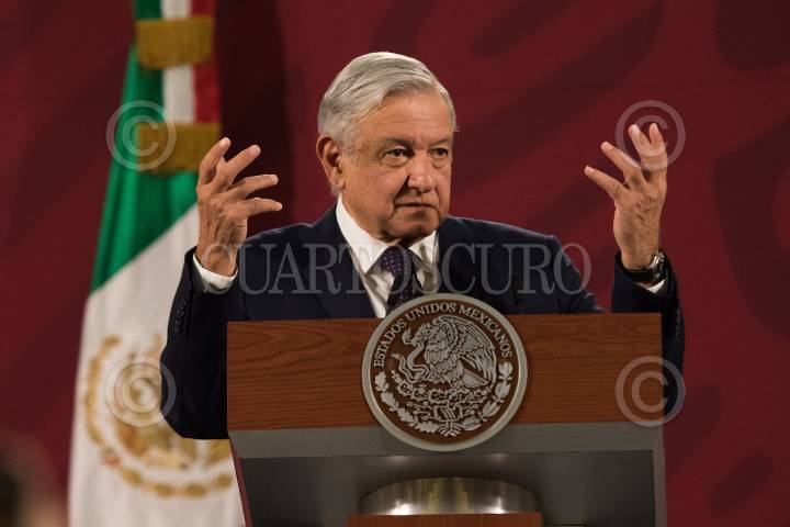 CIUDAD DE MÉXICO, 11MAYO2020.- Andrés Manuel López Obrador, Presidente de México, durante el inicio de la conferencia matutina en Palacio Nacional. Lo acompañan Luisa María Alcalde Luján, secretaria del Trabajo. FOTO: MOISÉS PABLO/CUARTOSCURO.COM