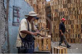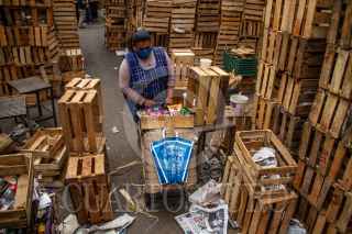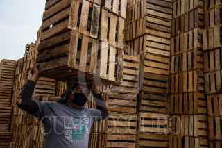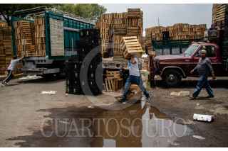 CIUDAD DE MÉXICO, 11MAYO2020.- La Central de Abastos (Ceda) registra una afluencia de 590,000 personas por día y un flujo comercial de 9,000 millones de dólares anuales, el cual ha disminuido hasta un 70% desde el inicio en nuestro país de la pandemia de Covid-19. Hasta la fecha ha habido 27 contagios en la Ceda, donde se han realizado ya 454 pruebas, según información de la alcaldía Iztapalapa. Pese a ser una zona de alto riesgo de contagio del SARS-Cov-2, el lugar no puede parar, pues de éste depende el abasto de millones de personas en el centro del país. Trabajadores que distribuyen las cajas de la Central continúan sus labores de manera normal; muchos de ellos no usan cubreboca o, durante el ajetreo de ir y venir con 40 cajas en el hombro, se lo quitan para respirar. A la zona de envases vacíos no llegan los encuestadores de Covid-19, quienes recorren los pasillos del gran Mercado de Latinoamérica, por lo que es fácil no seguir las indicaciones de la Secretaría de Salud. FOTO: ANDREA MURCIA/CUARTOSCURO.COM