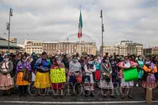 CIUDAD DE MÉXICO, 11MAYO2020.- Mujeres integrantes de la Unión de Artesanos Indígenas y Trabajadores No Asalariados y del Movimiento Indígena Artesano de México se manifestaron frente a Palacio Nacional para pedir apoyos económicos al gobierno federal debido a que no han podido ejercer su actividad comercial por las restricciones de movilidad y la cuarentena derivada de la pandemia de Covid-19. FOTO: MOISÉS PABLO/CUARTOSCURO.COM