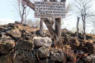 TEPOZTLÁN, MORELOS, 12MAYO2020.- Un letrero con una advertencia para quienes roben piedra se observa en un terreno ubicado en la Reserva Estatal El Texcal, en la cual no debe haber asentamientos humanos. FOTO: MARGARITO PÉREZ RETANA /CUARTOSCURO.COM