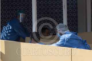 CIUDAD DE MÉXICO, 12MAYO2020.- En el cubículo de Triage Covid-19 del Hospital General continúa tratando a pacientes con síntomas de esta enfermedad, los pacientes son evaluados y tras un diagnóstico se les asigna un cama en el nosocomio para seguir el tratamiento, la mayoría tienen que usar oxígeno artificial. En los hospitales no hubo celebraciones especiales por la conmemoración del Día de la Enfermera, también se habían anunciado manifestaciones de inconformidad pero en el lugar no hubo tales. FOTO: MOISÉS PABLO/CUARTOSCURO.COM