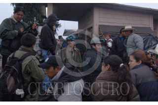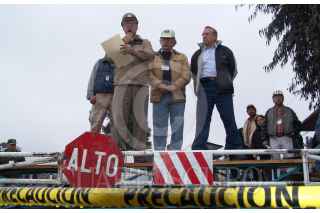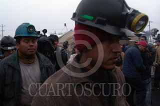 SAN JUAN DE SABINAS, COAHUILA 24FEBRERO2006.- El gerente de la mina 8, Rubén Escudero y el secretario del Trabajo, Francisco Javier Salazar, durante la conferencia de prensa que dieron por la mañana a los medios de comunicación e la que informaron sobre los avances de los trabajos de rescate de los mineros que se encuentran en el interior de la mina Pasta de Conchos desde el pasado domingo. FOTO: Manuel Rodríguez Muro / CUARTOSCURO.COM