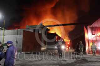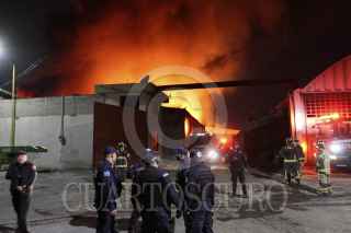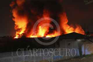 Valle de Chalco, Estado de México, 13 mayo 2020. Esta madrugada se registró un incendio en una fábrica y bodega de estopa y algodón en la colonia Santa Catarina, límites con la ciudad de México. Vecinos de las calles Granjas y Tecamazuchitl dieron aviso a los servicios de emergencia de la fuerte explosión que inicio esta conflagración que consumió al menos dos mil metros cuadrados de este predio. Bomberos de la CDMX arribaron para ayudar a sofocar las llamas. Foto: Luis Carbayo/cartoscuro.com