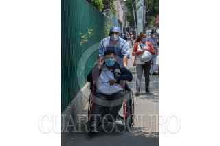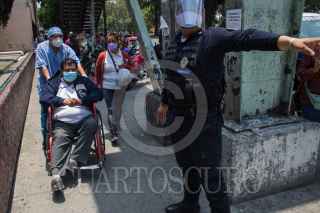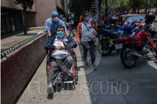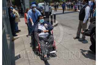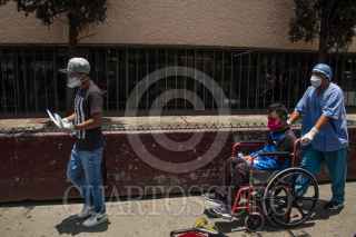 CIUDAD DE MÉXICO, 13MAYO2020.- Entre aplausos son despedidos pacientes que son dados de alta tras superar al Covid-19 en el Hospital de Infectología del IMSS, en la Raza. Hoy personal médico de este nosocomio realizó una manifestación por falta de insumos de protección para atender a pacientes contagiados. Dos personas que superaron la enfermedad salieron en silla de ruedas acompañados de sus familiares. A pesar de la protesta los inconformes les aplaudieron. FOTO: MOISÉS PABLO/CUARTOSCURO.COM