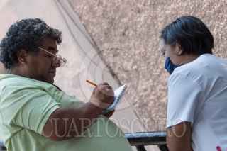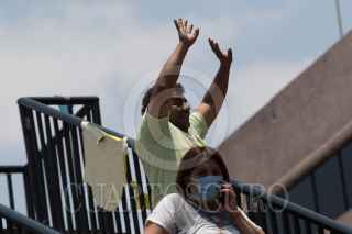 CIUDAD DE MÉXICO, 13MAYO2020.- Familiares de pacientes infectados de Covid-19 en el Hospital Infectología saludan desde lo lejos a sus seres queridos, ya que debido a la naturaleza de la enfermedad no pueden visitarlos hasta que superen al virus. Una enfermera de nombre Susana se dio a la tarea de recolectar mensajes de aliento en una libreta de las personas que esperan saber de sus seres amados, con la promesa de que ella se los iba hacer llegar. FOTO: MOISÉS PABLO/CUARTOSCURO.COM