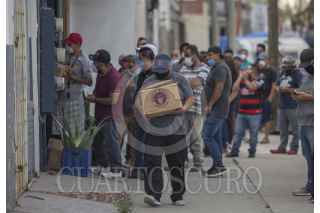 TIJUANA, BAJA CALIFORNIA, 14MAYO2020.- El restablecimiento de cerveza en algunas tiendas de conveniencia ubicadas en la ciudad fronteriza provocaron largas filas por parte de ciudadanos que acudieron para tratar de conseguir el liquido. Algunas personas permanecieron por horas la tarde de este jueves en el establecimiento ubicado en el Paseo Playas, de la delegación Playas de Tijuana. Durante las últimas semanas los refrigeradores y estantes sin cerveza en comercios de Tijuana se han vuelto una imagen frecuente tras el paro de cervecerías como establecimiento no esenciales. FOTO: OMAR MARTÍNEZ /CUARTOSCURO.COM
