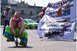 Artistas urbanos integrantes del colectivo “Una sola Voz” marcharon en la capital mexiquense para pedir apoyo durante la contingencia por COVID-19, al quedarse sin recurso por el cierre de espacios públicos en donde realizaban su trabajo. FOTO: CRISANTA ESPINOSA AGUILAR /CUARTOSCURO.COM