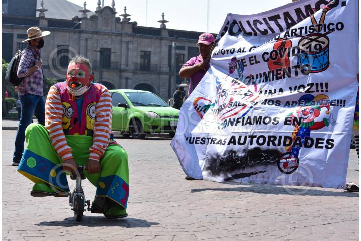 Artistas urbanos integrantes del colectivo “Una sola Voz” marcharon en la capital mexiquense para pedir apoyo durante la contingencia por COVID-19, al quedarse sin recurso por el cierre de espacios públicos en donde realizaban su trabajo. FOTO: CRISANTA ESPINOSA AGUILAR /CUARTOSCURO.COM