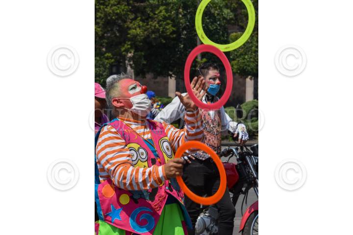Artistas urbanos integrantes del colectivo “Una sola Voz” marcharon en la capital mexiquense para pedir apoyo durante la contingencia por COVID-19, al quedarse sin recurso por el cierre de espacios públicos en donde realizaban su trabajo. FOTO: CRISANTA ESPINOSA AGUILAR /CUARTOSCURO.COM