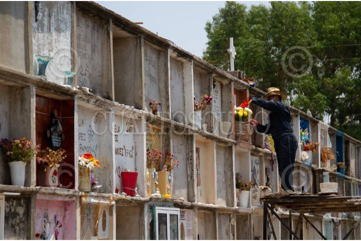 NEZAHUALCÓYOTL, ESTADO DE MÉXICO, 15MAYO2020.- En el panteón municipal de Nezahualcóyotl continúan disponibles hasta el día de hoy 800 gavetas en caso de que hubiera un excedente de cuerpos a causa de la pandemia de COVID-19. En el lugar se operan 2 hornos en caso de inhumación. Juan Carlos Cruz y Víctor Manuel, son los encargados de la operación, explican que tienen una capacidad máxima de 12 cuerpos por día. Hasta la fecha las muertes por COVID-19 representan un 20 por ciento del total de cuerpos que llegan al día. FOTO: ANDREA MURCIA /CUARTOSCURO.COM