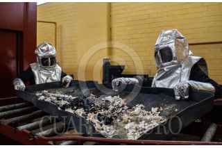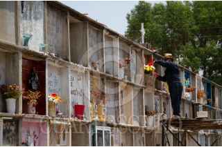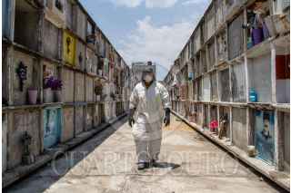 NEZAHUALCÓYOTL, ESTADO DE MÉXICO, 15MAYO2020.- En el panteón municipal de Nezahualcóyotl continúan disponibles hasta el día de hoy 800 gavetas en caso de que hubiera un excedente de cuerpos a causa de la pandemia de COVID-19. En el lugar se operan 2 hornos en caso de inhumación. Juan Carlos Cruz y Víctor Manuel, son los encargados de la operación, explican que tienen una capacidad máxima de 12 cuerpos por día. Hasta la fecha las muertes por COVID-19 representan un 20 por ciento del total de cuerpos que llegan al día. FOTO: ANDREA MURCIA /CUARTOSCURO.COM