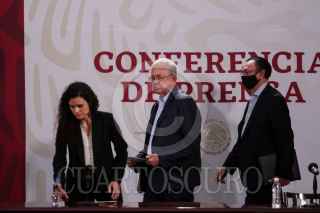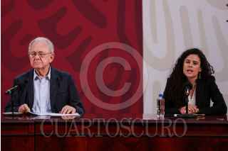 CIUDAD DE MÉXICO, 16MAYO2020.- Conferencia de prensa encabezada por Javier Jiménez Espriú, secretario de Comunicaciones y Transporte, y Luisa María Alcalde, secretaria de Trabajo y Previsión Social, para presentar el programa de pavimentación de carreteras en las cabeceras municipales de distintas entidades del país, entre las que se encuentra Oaxaca. FOTO: GALO CAÑAS /CUARTOSCURO.COM