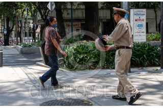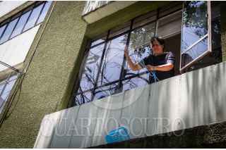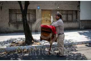 CIUDAD DE MÉXICO, 16MAYO2020.- La familia Martínez de organilleros, desde que las principales calles del Centro Histórico han sido cerradas como medida ante la contingencia de COVID-19. Sus ingresos bajaron considerablemente, optando por recorrer las principales colonias de la Ciudad, como en este caso la Condesa. Mientras tocan las melodías piden cooperación a transeúntes y a las personas de los edificios aledaños, que lanzan monedas desde sus ventanas y balcones. Algunos se solidarizan y les bajan en canastillas alimentos también. FOTO: ANDREA MURCIA/CUARTOSCURO.COM
