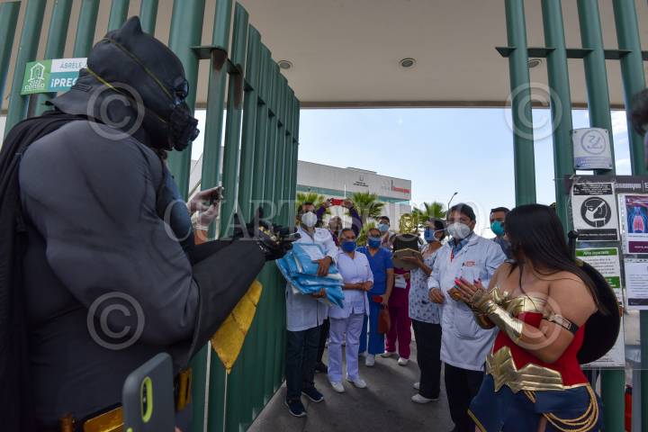 Integrantes de la Barra Perra Brava visitaron la zona de hospitales en Toluca y agradecieron a los héroes de bata blanca, médicos y enfermeras que se encuentran combatiendo en los hospitales al COVID-19. FOTO: CRISANTA ESPINOSA AGUILAR /CUARTOSCURO.COM