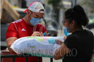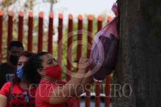 CIUDAD DE MÉXICO, 17MAYO2020.- Familiares de pacientes con Covid-19 llegaron a las inmediaciones del Hospital General Tláhuac para entregar almohadas, papel de baño, agua o algún detalle. En el país se confirma 47 144 casos positivos y 5045 defunciones. FOTO: GRACIELA LÓPEZ /CUARTOSCURO.COM