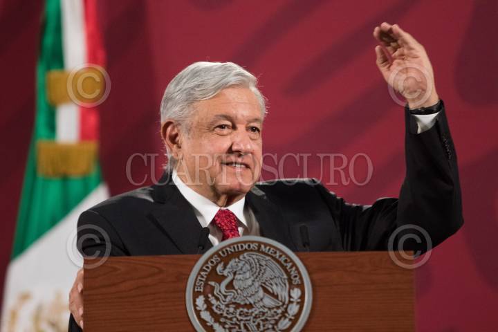 CIUDAD DE MÉXICO, 18MAYO2020.- Andrés Manuel López Obrador, Presidente de México, durante la conferencia de prensa en Palacio Nacional. Ricardo Sheffield Padilla, titular de la Profeco, reapareció tras ser diagnosticado de Covid-19 hace dos semanas. FOTO: MOISÉS PABLO/CUARTOSCURO.COM
