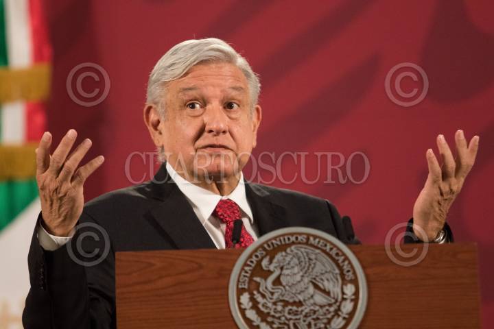 CIUDAD DE MÉXICO, 18MAYO2020.- Andrés Manuel López Obrador, Presidente de México, durante la conferencia de prensa en Palacio Nacional. Ricardo Sheffield Padilla, titular de la Profeco, reapareció tras ser diagnosticado de Covid-19 hace dos semanas. FOTO: MOISÉS PABLO/CUARTOSCURO.COM