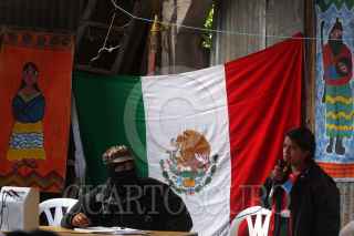 HUAYACOCOTLA, VERACRUZ 26FEBRERO2006.- El Sub Comandante Insurgente Marcos, Delegado Zero para La Otra Campaña del EZLN escucha las denuncias de una mujer indigena en el norte del estado. FOTO: Moysés Zúñiga Santiago/CUARTOSCURO.COM