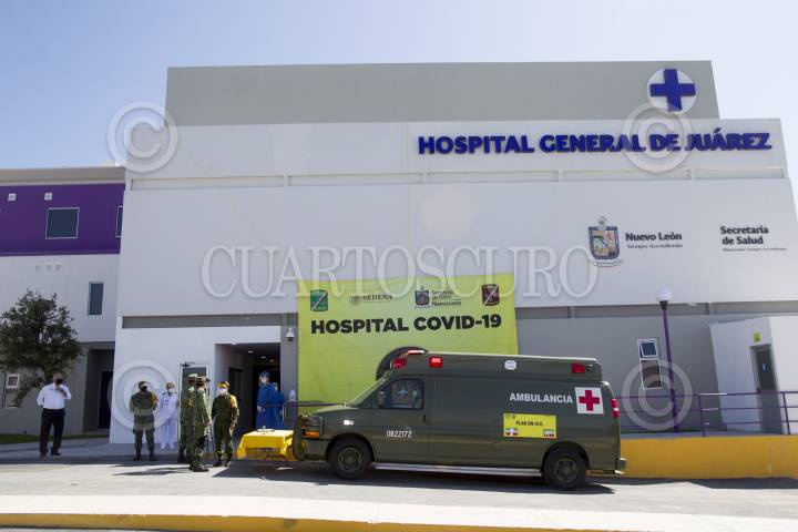 MONTERREY, NUEVO LEÓN, 18MAYO2020.- Médicos y enfermeras del Ejército Mexicano realizan una simulación en atención a pacientes positivos por Covid-19 en el Hospital Juárez y el Hospital Tierra y Libertad que se encuentran a cargo de la SEDENA en coordinación con la Secretaría de Salud,as cuales serán utilizadas una vez que comiencen la saturación en los diferentes centros de salud. FOTO: GABRIELA PÉREZ MONTIEL / CUARTOSCURO.COM