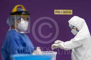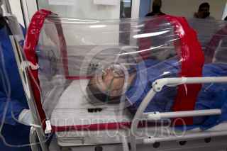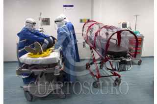 MONTERREY, NUEVO LEÓN, 18MAYO2020.- Médicos y enfermeras del Ejército Mexicano realizan una simulación en atención a pacientes positivos por Covid-19 en el Hospital Juárez y el Hospital Tierra y Libertad que se encuentran a cargo de la SEDENA en coordinación con la Secretaría de Salud,as cuales serán utilizadas una vez que comiencen la saturación en los diferentes centros de salud. FOTO: GABRIELA PÉREZ MONTIEL / CUARTOSCURO.COM