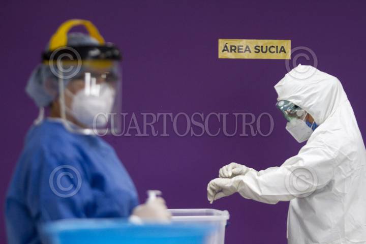 MONTERREY, NUEVO LEÓN, 18MAYO2020.- Médicos y enfermeras del Ejército Mexicano realizan una simulación en atención a pacientes positivos por Covid-19 en el Hospital Juárez y el Hospital Tierra y Libertad que se encuentran a cargo de la SEDENA en coordinación con la Secretaría de Salud,as cuales serán utilizadas una vez que comiencen la saturación en los diferentes centros de salud. FOTO: GABRIELA PÉREZ MONTIEL / CUARTOSCURO.COM