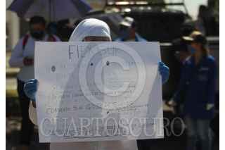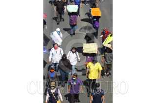 CIUDAD JUÁREZ, CHIHUAHUA. 18MAYO2020.- Varios empleados de maquila se reunieron para manifestarse debido a que se encuentran inconformes por el regreso a labores, señalaron que no se sienten seguros con las medidas de prevención de las plantas. De ahí partieron hacia por la Ejército Nacional, hacia la avenida Tecnológico para llegar a la Subdelegación de la Secretaría del Trabajo y Previsión donde buscan sean atendidos para garantizar su seguridad. FOTO: NACHO RUÍZ/CUARTOSCURO.COM