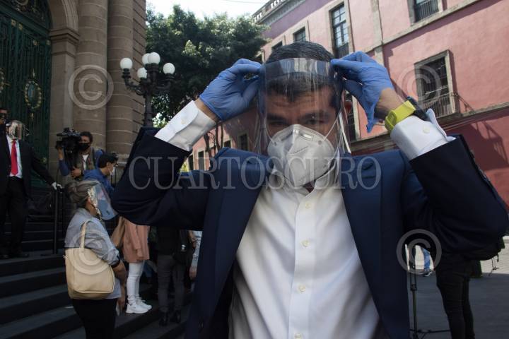CIUDAD DE MÉXICO, 19MAYO2020.- Tras más de u mes de inactividad este día sesionó en privado el Congreso Local, los diputados llegaron ataviados de cubrebocas, caretas y guantes como medida preventiva ante la pandemia de Covid-19. FOTO: MOISÉS PABLO/CUARTOSCURO.COM