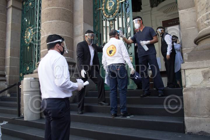 CIUDAD DE MÉXICO, 19MAYO2020.- Tras más de u mes de inactividad este día sesionó en privado el Congreso Local, los diputados llegaron ataviados de cubrebocas, caretas y guantes como medida preventiva ante la pandemia de Covid-19. FOTO: MOISÉS PABLO/CUARTOSCURO.COM