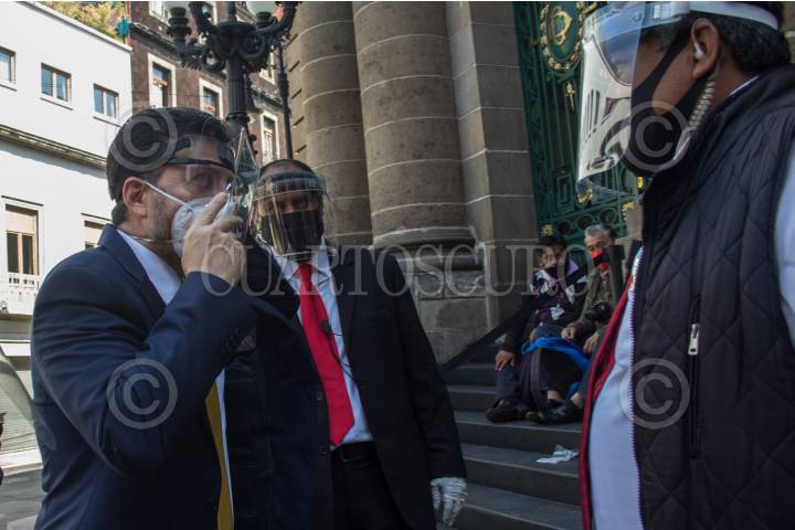 CIUDAD DE MÉXICO, 19MAYO2020.- Tras más de u mes de inactividad este día sesionó en privado el Congreso Local, los diputados llegaron ataviados de cubrebocas, caretas y guantes como medida preventiva ante la pandemia de Covid-19. FOTO: MOISÉS PABLO/CUARTOSCURO.COM