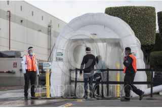 TIJUANA, BAJA CALIFORNIA, 19MAYO2020.- Maquiladoras que habían suspendido actividades para evitar la propagación del covid-19 han vuelto a operar, algunas de ellas suspendieron de forma voluntaria y otras siguieron laborando bajo estricto protocolo de higiene debido a que su producción es parte de la cadena de suministros esenciales. Durante el pasado 01 de mayo, el gobierno de Baja California ordenó la reapertura de 35 empresas que fueron suspendidas el 16 de abril, esto después de haber sido revisadas por parte de la Secretaría de Economía y Cofepris. FOTO: OMAR MARTÍNEZ /CUARTOSCURO.COM