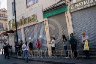 CIUDAD DE MÉXICO, 19MAYO2020.- Personas hacen fila par poder ingresar a los negocios de herramientas de la calle Corregidora en el Centro Histórico, desde el fin de semana la afluencia de personas en las calles aumento a pesar de que aún no termina la jornada de sana distancia. FOTO: MOISÉS PABLO/CUARTOSCURO.COM