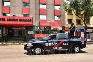 CIUDAD DE MEXICO. 20MAYO2020.- Elementos de la policía capitalina, llegaron al hotel Ambos Mundos dónde el día de ayer policía de investigación rescató a 14 médicos y enfermeras que tenían secuetrados y extorsionaron a sus familias. FOTO: ARMANDO MONROY/CUARTOSCURO.COM