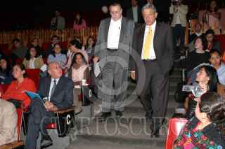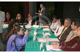 MEXICO, D.F., 27FEBRERO2006.- Andrés Manuel López Obrador, candidato a la presidencia de la República por la coalición Por el Bien de Todos PRD-PT-Convergencia y Miguel Cocha, durante un encuentro con organizaciones de derechos humanos en el Centro Universitario Cultural. FOTO: Moisés Pablo/CUARTOSCURO.COM