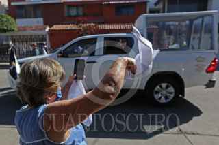 ZAPOPAN, JALISCO, 20MAYO2020.- Hoy da inicio la peregrinación de la Virgen de Zapopan por los templos de la zona metropolitana de Guadalajara antes de regresar a la Basílica de Zapopan en la tradicional Romería que se lleva a cabo el 12 de Octubre, solo que esta vez la dinámica es diferente, ya que por la pandemia sanitaria que se vive en el mundo respecto al Covid-19 y con el fin de evitar la aglomeración de personas la imagen viajo en camioneta por las calles de la colonia Paseos del Sol justo a los alrededores de la Parroquia del Señor de la Salud. FOTO: FERNANDO CARRANZA GARCIA/CUARTOSCURO.COM