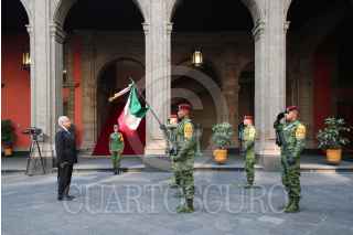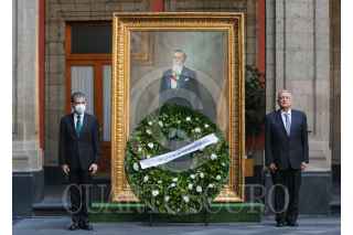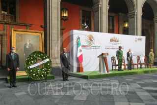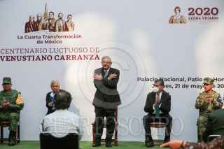 CIUDAD DE MÉXICO, 21MAYO2020.- Andrés Manuel López Obrador, Presidente de México, encabezó la ceremonia conmemorativa del aniversario luctuoso de ex Presidente Venustiano Carranza, en Palacio Nacional. Lo acompañaron Miguel Riquelme Solís, gobernador de Coahuila; Olga Sánchez Cordero, secretaria de Gobernación; y Felipe Arturo Ávila Espinosa, director del Instituto Nacional de Estudios Históricos de las Revoluciones de México. FOTO: PRESIDENCIA/CUARTOSCURO.COM