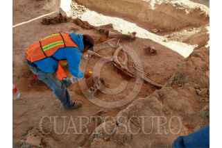ZUMPANGO, ESTADO DE MÉXICO, 21MAYO2020.- El descubrimiento y la recuperación de osamentas correspondientes a alrededor de 60 mamuts, así como de 15 enterramientos humanos de época prehispánica en los terrenos donde se construye el Aeropuerto Internacional General Felipe Ángeles –antes ocupados por la Base Aérea Militar de Santa Lucía– permite a las secretarías de Cultura, a través del Instituto Nacional de Antropología e Historia (INAH), y de la Defensa Nacional (Sedena) avanzar en el entendimiento del devenir de la Cuenca de México. Hasta el momento, el INAH ha abierto 23 frentes de exploración en los terrenos donde se construye la instalación aeroportuaria, como parte de un proyecto de salvamento arqueológico y paleontológico, el cual se lleva a cabo con el respaldo logístico y financiero de la Sedena, y se desarrolla en apego a la legislación en la materia. El coordinador nacional de Arqueología del INAH, Pedro Francisco Sánchez Nava, precisa que los restos óseos se localizaron en tres áreas de exploración y que aún se están estabilizando, analizando y clasificando por lo que, aclara, aún no es posible determinar cuántas osamentas podrían estar completas. FOTO: INAH/CUARTOSCURO.COM