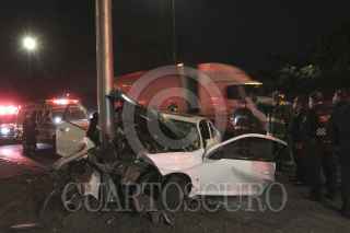 Ciudad de México, 22 mayo 2020. Un hombre resultó gravemente lesionado al impactar su automóvil en un poste, sobre el Eje Central 100 metros y el eje 4 Norte Euzkaro en la colonia Magdalena de las Salinas, alcaldía de Gustavo A. Madero. Foto: Luis Carbayo/cuartoscuro.com
