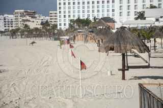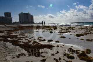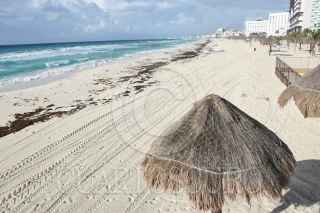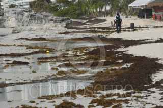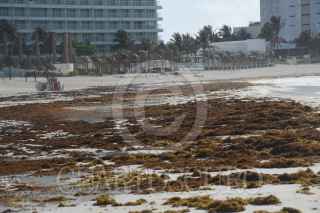 CANCÚN, QUINTANA ROO, 22MAYO2020.- Las playas Chacmool y Gaviotas comienzan a presentar acumulación de macroalgas de sargazo creció sustancialmente durante el mes de abril y avanza con las corrientes marinas en dirección a las costas del Caribe Mexicano, se espera junio.y julio incremente. FOTO: ELIZABETH RUIZ /CUARTOSCURO.COM