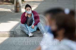 CIUDAD DE MÉXICO, 24MAYO2020.- Berenice Martínez llegó desde tempranas horas al Hospital de Expansión para pacientes Covid-19 del IMSS en el Autódromo Hermanos Rodríguez, para tener noticias de su esposo que Erick López que fue ingresado desde el pasado viernes por tener insuficiencia respiratoria, comenta que a pesar de que fueron atendidos de manera rápida ya que le asignaron en menos de media hora cama, es la fecha que las autoridades del IMSS no le han llamado para informarle de la salud de su esposo. Ella señala que viene desde lejos (caseta de Tepotzotlán) y en su trabajo no la dejan faltar, por lo que no puede estar vuelta y vuelta hasta este lugar, sin embargo, le preocupa el estado de salud de su compañero. Expone que además de estas complicaciones ningún familiar quiere apoyarla haciendo guardia en las afueras de este sitio por temor a infectarse de Covid-19, y que el patrón de su marido le exige pruebas para justificar su ausencia laboral. Varias veces se acercó a la puerta para pedir a la gente de seguridad que la dejarán pasar y saber de primera mano que esta pasando, pero estos solo le dicen que tiene que esperar la llamada, misma que no llega desde hace tres días. FOTO: MOISÉS PABLO/CUARTOSCURO.COM