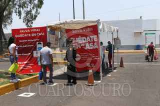 CIUDAD DE MÉXICO, 24MAYO2020.- Elementos de seguridad y personal médico utilizaron medidas sanitarias a los familiares que acudieron a visitar a los internos en las inmediaciones del Penal Femenil y Varonil Santa Martha Acatitla. El día de ayer el Penal Femenil reportó el contagio de 19 internas de Covid-19, reveló que dentro de la supervisión en los espacios de aislamiento por sospecha de COVID-19, el grueso de los casos son reclusos de nuevo ingreso quienes más presentan síntomas y se indicó que nuevos reclusos se mantendrán en aislamiento durante al menos 14 días y no podrán ser visitados. FOTO: GRACIELA LÓPEZ /CUARTOSCURO.COM