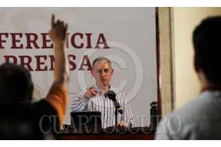 CIUDAD DE MÉXICO, 24MAYO2020.- José Luis Alomía, director General de Epidemiología y Hugo López-Gatell, subsecretario de la Secretaría de Salud, encabezaron el informe diario sobre el avance de la propagación de Coronavirus COVID-19 en el país, en Palacio Nacional. FOTO: MAGDALENA MONTIEL /CUARTOSCURO.COM