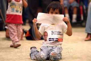 MEXICO, D.F., 28FEBRERO2006.- Un niño juega durante el evento del abanderado presidencial del PAN, en un hotel de la capital. FOTO: Moisés Pablo/CUARTOSCURO.COM