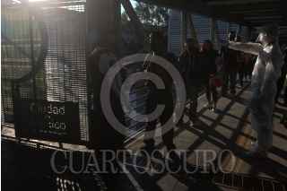 CIUDAD DE MÉXICO, 25MAYO2020.- A partir de hoy, elementos de seguridad y trabajadores del Sistema de Transporte Público Metrobús realizaron la dosificación del ingreso de usuarios en la estación terminal Tepalcates con el propósito de no propagar más contagios de Covid-19 y evitar aglomeraciones. El horario transcurrió desde las 6:00 hasta las 8:30 horas. Así mismo se llevo a cabo en las estaciones Indios Verdes, Tenayuca y el Rosario. FOTO: GRACIELA LÓPEZ /CUARTOSCURO.COM